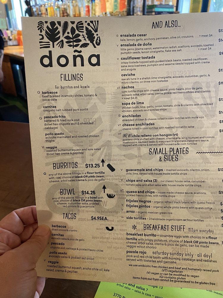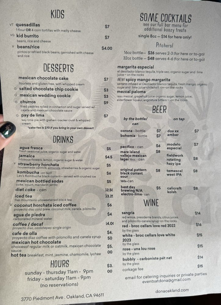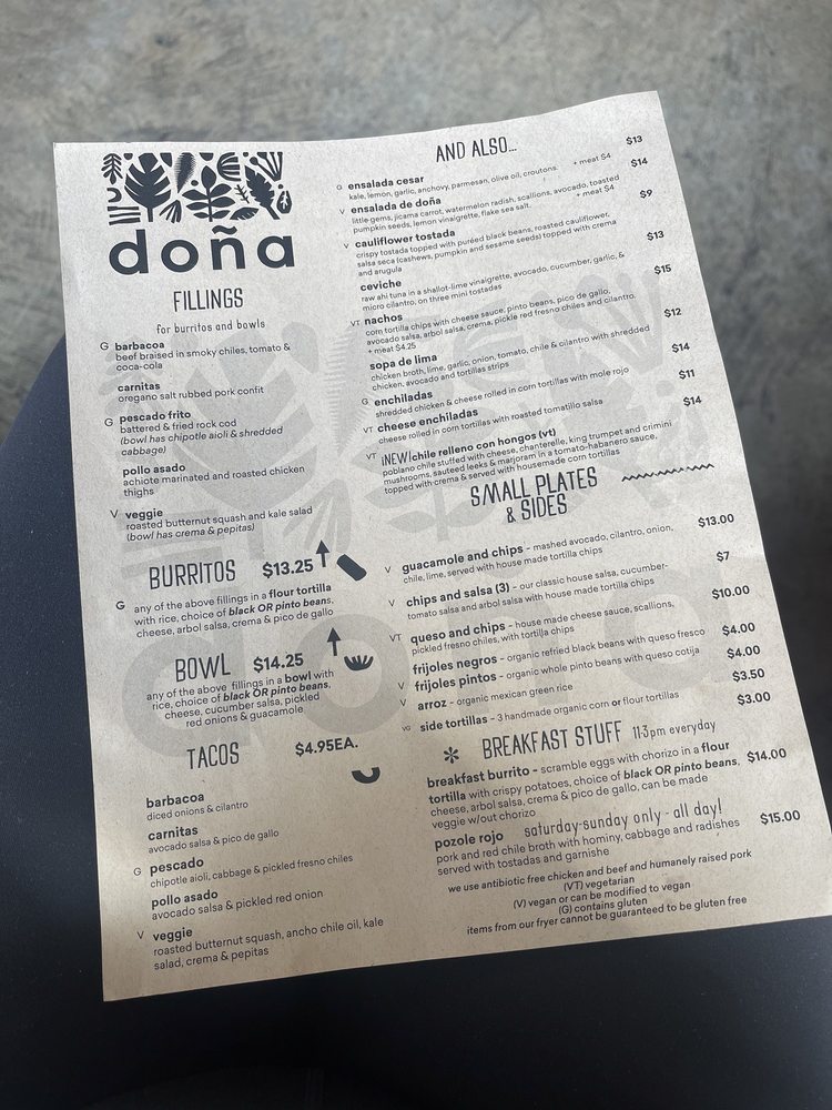 Doña, a Mexican restaurant located in Oakland, CA, stands out for its casual and trendy vibe, offering a variety of vegan and vegetarian options. With a spacious layout, both indoor and outdoor seating, and a range of amenities like delivery, takeout, and full bar service, Doña caters to diverse dining preferences. Customers praise the fresh and tasty food at reasonable prices, with highlights including chilaquiles, guacamole, fish burritos, and margaritas. The establishment's attentive service and convenient self-ordering system make it an ideal choice for groups and families. Overall, Doña provides a vibrant dining experience with a vibrant atmosphere and flavorful dishes that keep patrons coming back for more.